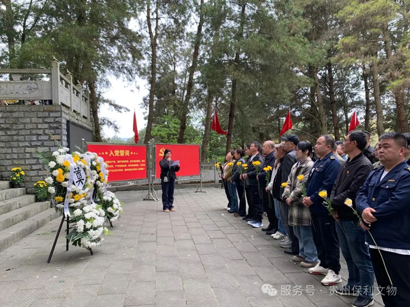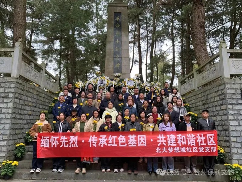清明将至,松柏凝翠,哀思绵长。为缅怀革命先烈丰功伟绩,传承红色基因,厚植家国情怀,4 月 1 日,保利文物党支部与北大梦想城社区党支部、映山湖社区党支部、贵阳公交公司党支部的党员及入党积极分子们一起,前往观山湖区百花湖烈士陵园,开展清明祭扫烈士陵园主题党日活动,以庄重仪式祭奠英烈、寄托哀思,传承红色基因,筑牢初心使命。