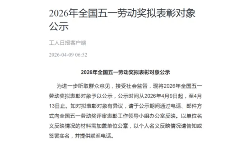 01 喜报!我司吴胜成同志入选2026年全国五一劳动奖章拟表彰名单
